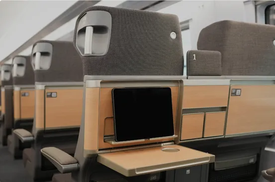 Successful integration of MoldJet pins in Deutsche Bahn's first-class cars for ICE 3neo high-speed trains, meeting functional and aesthetic requirements.